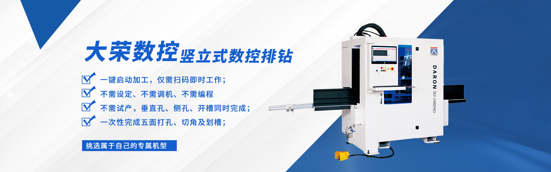 大榮數(shù)控成立于 1996 年,是臺(tái)灣大榮在國(guó)內(nèi)投資的高新技術(shù)企業(yè),主要從事數(shù)控系統(tǒng)的研發(fā)和數(shù)控機(jī)床的生產(chǎn)和銷(xiāo)售。 公司本著"品無(wú)止境,誠(chéng)信為本,追求更好"的原則,精心投入 CNC 數(shù)控機(jī)械行業(yè),先后研發(fā)出:CNC 五軸聯(lián)動(dòng)加工中心、數(shù)控板材加工中心、數(shù)控板式家具生產(chǎn)線幾大系列十幾個(gè)規(guī)格的產(chǎn)品。被廣泛應(yīng)用于機(jī)械,科研院所,保麗龍加工、車(chē)輛內(nèi)飾、厚片吸塑件、鋁板、輕金屬、絕緣材料、各類(lèi)木板材、木器、木門(mén)、模具、化工、廣告、石材加工等不同領(lǐng)域,并遠(yuǎn)銷(xiāo)世界各國(guó)。大榮公司借鑒國(guó)外技術(shù),采用原裝進(jìn)口配件,確保整機(jī)質(zhì)量。 精湛的制造工藝,規(guī)模化的生產(chǎn),的產(chǎn)品質(zhì)量,專(zhuān)業(yè)的用戶培訓(xùn),完...